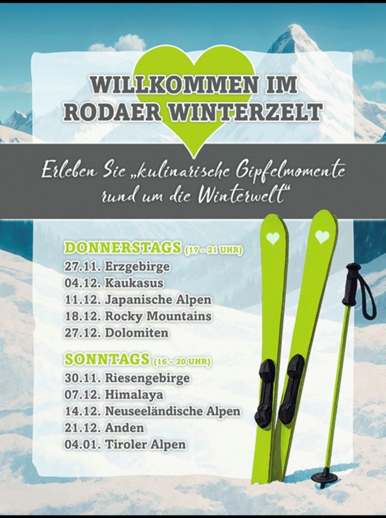 Freut Euch auf eine kulinarische Bergreise um die Welt – mit ausgewählten Speisen, wärmenden Drinks und gemütlicher Stimmung am Kaminfeuer. Es läuft wie auf dem Weihnachtsmarkt: Jeder kommt & geht, wann er will – wir reservieren keine Plätze und alles ist Selbstbedienung. Speisen an der Hütte & Getränke an der Bar im Zelt.